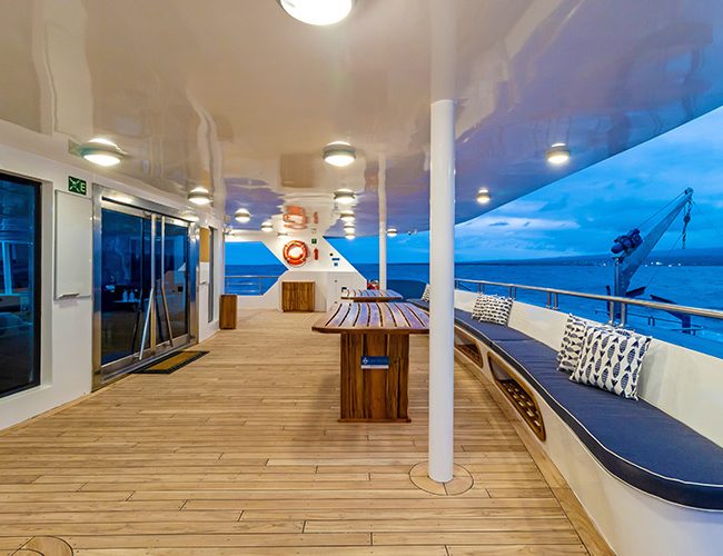 The Cormorant II mega catamaran was conceived with an ecological, safe, comfortable and silent sense; offering amenities such as the lounge with a 180° view, satellite Internet service on board, floor-to-ceiling windows and the best itineraries led by our cruise director and renowned bilingual naturalist guides.